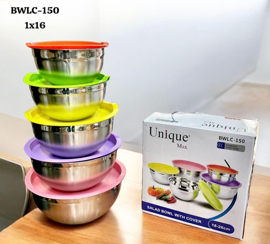 پخش کاسه استیل 5 تیکه سر دار رنگی یونیک مدل 150