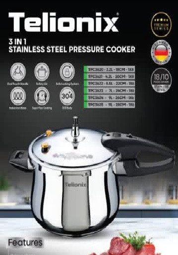 زود پز سه کاره ی روگازی تمام استیل تلیونیکس 11 لیتری مدل TPC 3625